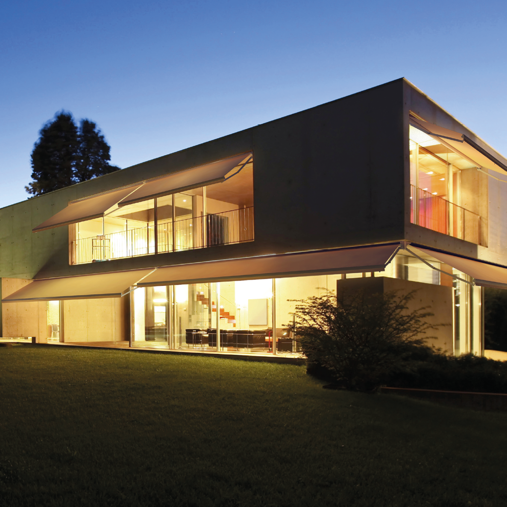 Toldo cofre stor para balcón con brazo abatible de 50cm.