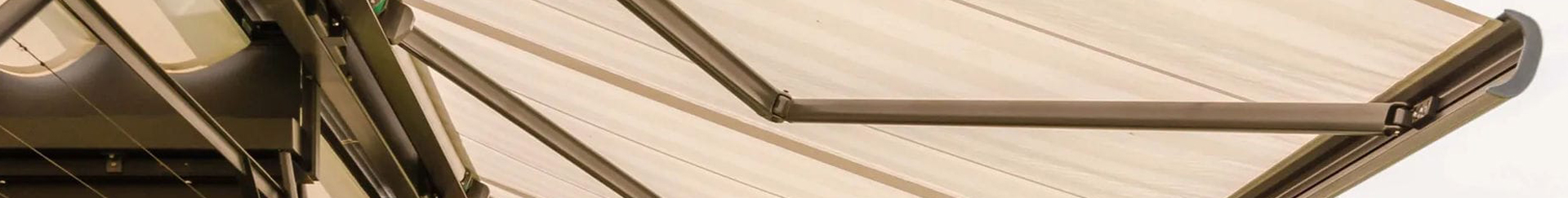 Toldo cofre de 174x192 redondo modular para proporcionar gran longitud, con brazo articulado y soportes estándar con tapa a pared o techo.