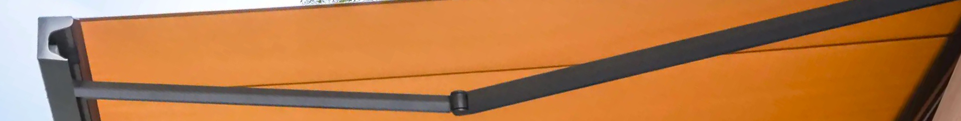 Toldo cofre redondo con brazo articulado y soportes estándar a pared o techo.